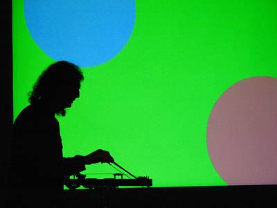 Die Projektion besteht aus einem Film mit bunten Punkten, Spiralen und abstrakten Formen, die vor einem sich hin und her bewegenden Hintergrund durch das Bild huschen, sich drehen und verformen. Dieser Film wurde in 6 Variationen verändert und in jeden Film wurde noch eine schwarze Bohrerähnliche Linie, die sich aus jeweils verschiedenen Richtungen durch den Film bohrt, eingesetzt.