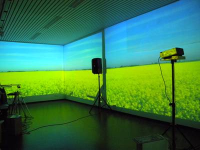 Ob alle Beamer das gleiche Bild zeigen oder von Bild 1 bis Bild 6 Formen durchlaufen oder ob alle Wände quasi als verbreitertes Bild gesehen werden, wo mal hier mal da was auftaucht...das war dem jeweiligen Autor überlassen.